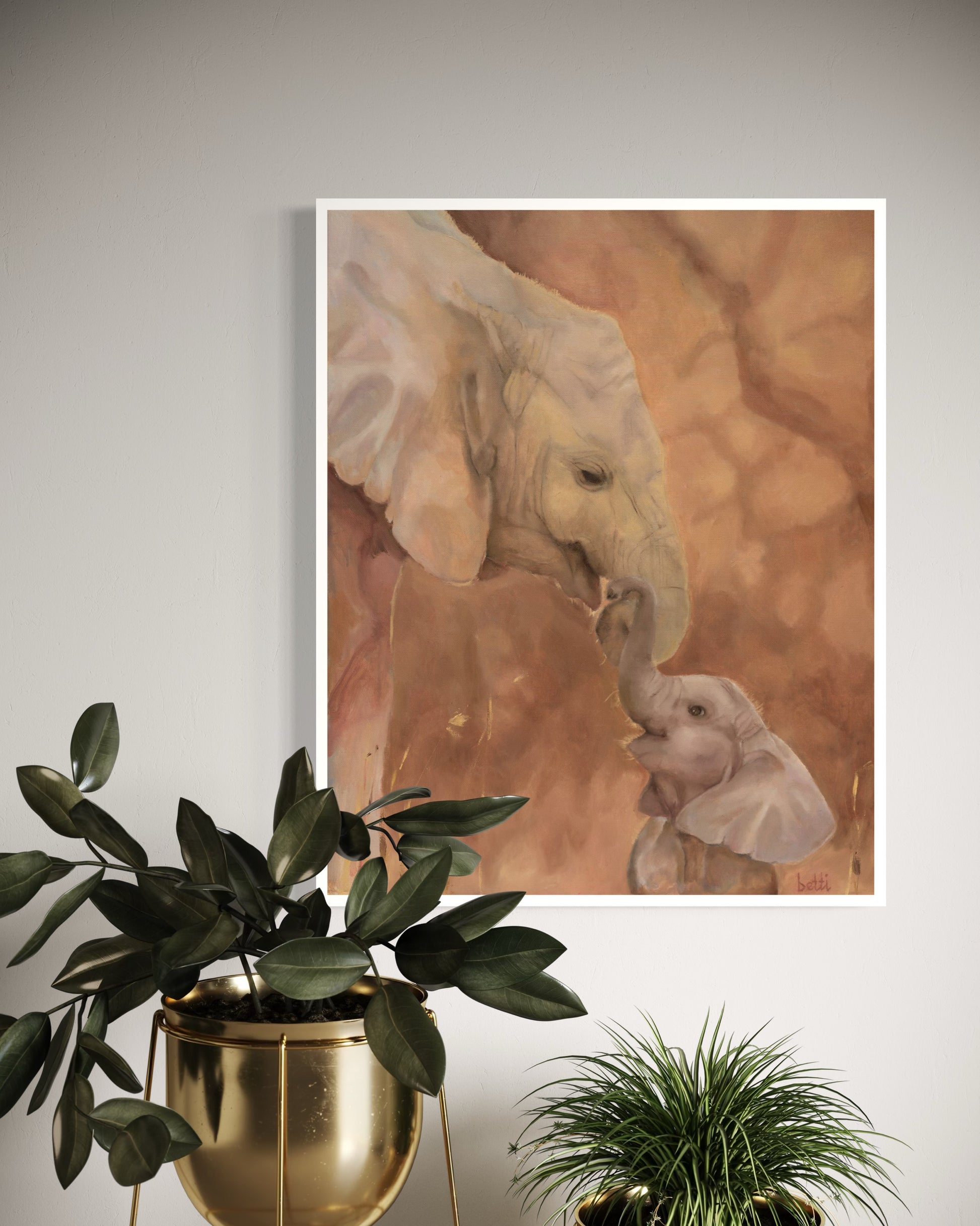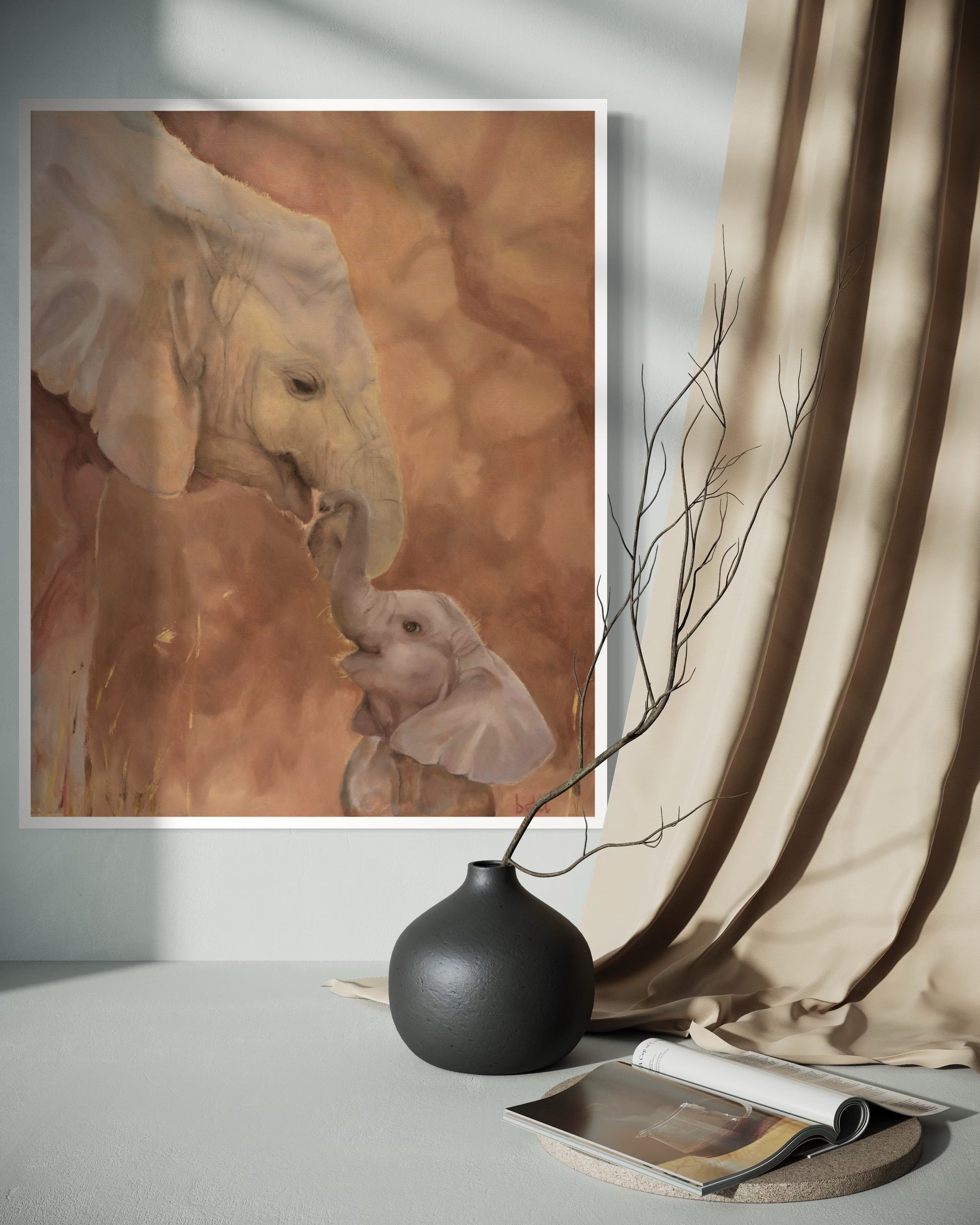 This artwork reflects the warmth and security that a mother's love embodies, capturing the essence of home in its truest form. The piece is thoughtfully crafted with an acrylic base, then enhanced with layers of oil paint, creating depth and texture.